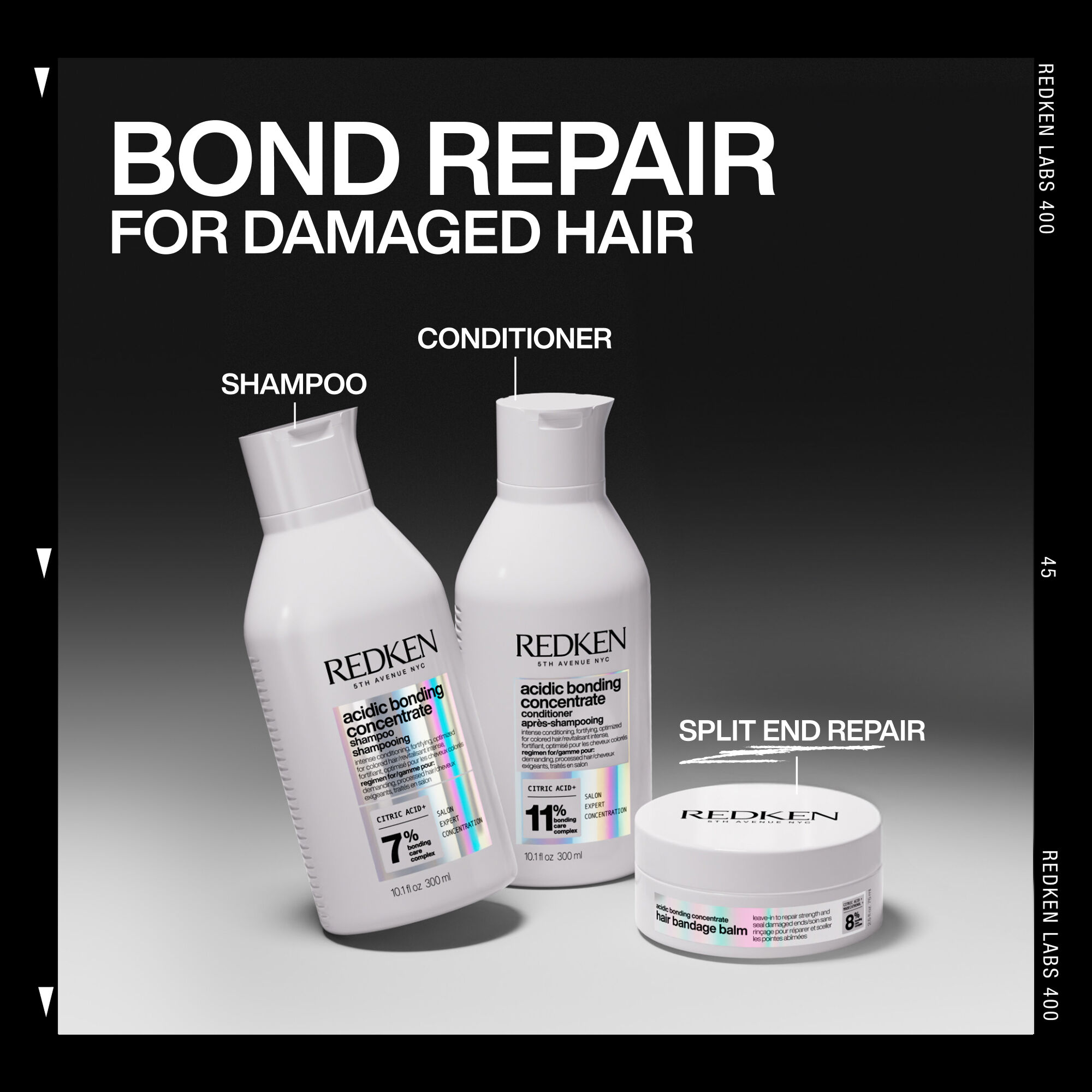 - Rebuild Weak Hair Bonds With Bond-Building Treatments: These specialized formulas reinforce weakened bonds to target the core of hair damage. Look for bond builders packed with Citric Acid, which helps strengthen damaged hair such as the Redken Acidic Bonding Concentrate Intensive Treatment that helps provide pH balance, strength, and conditioning with a bonding care complex formula. You can expect strength repair for dry, damaged hair. Using this system results in 2x stronger* and 90% more conditioned* hair. It also provides instant results in 5-10 minutes, repairing hair strength inside and out for 14x smoother hair* and 63% less breakage*.