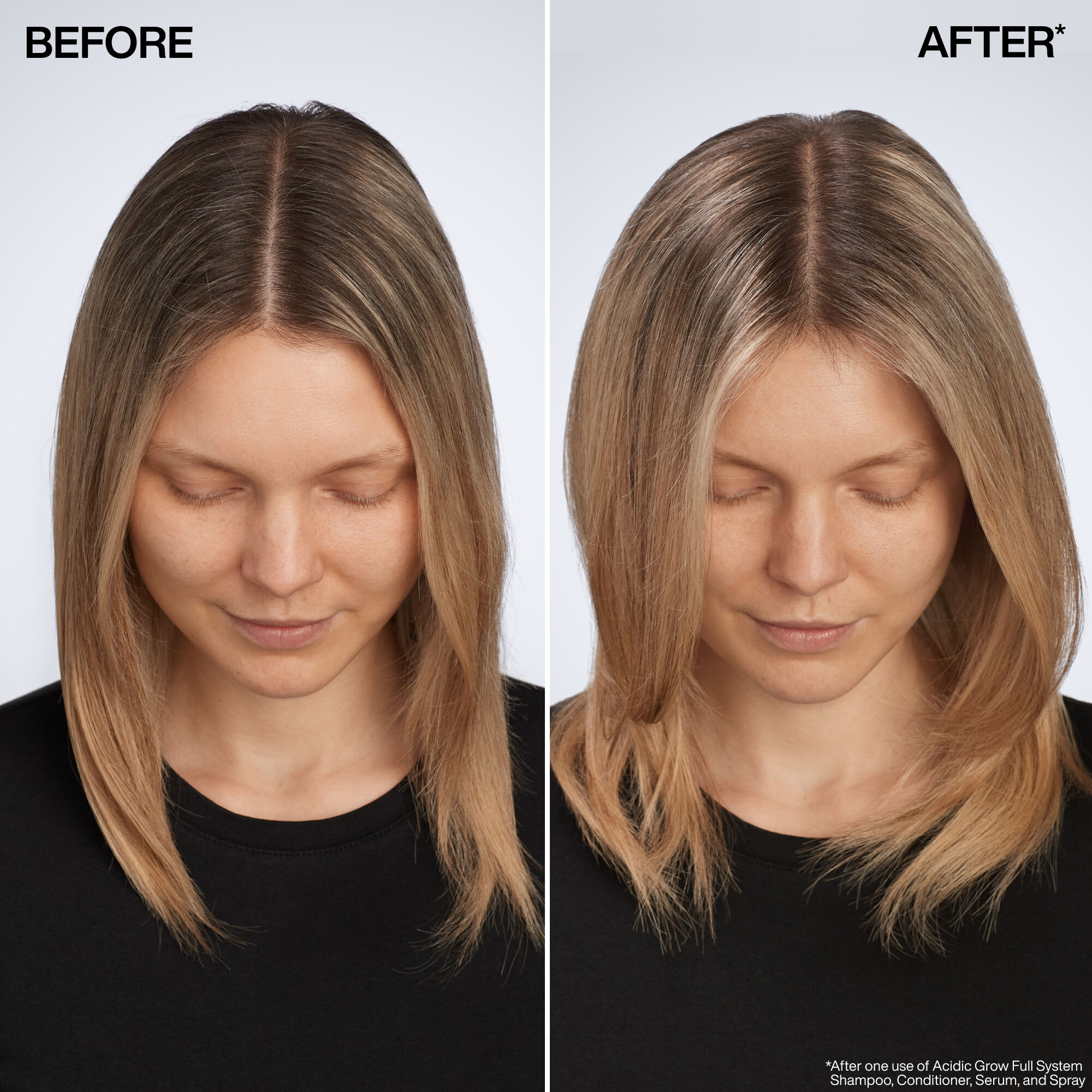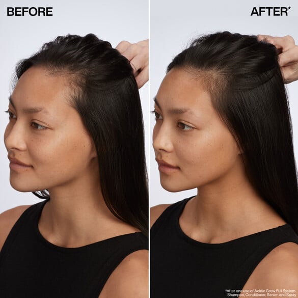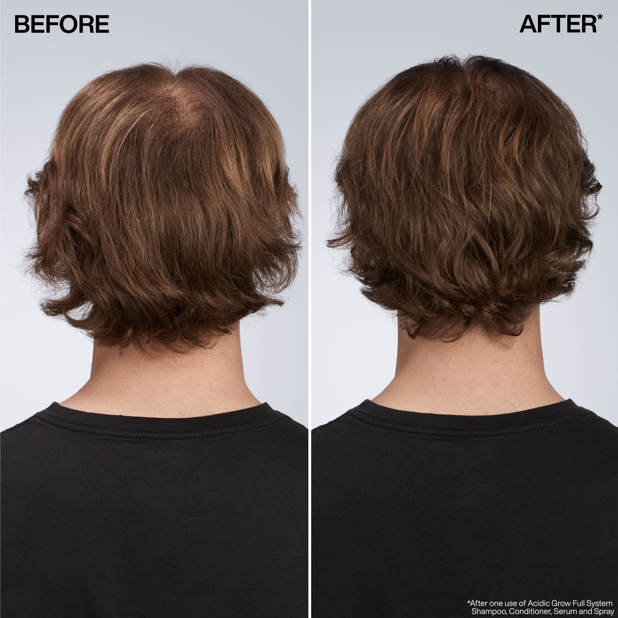 On damp hair, mist Acidic Grow Full System Instant Densifying Spray onto mid-lengths to ends at least 6 inches away from hair. Work product through hair with a comb. Do not rinse. Style as usual. For best results, use with Acidic Grow Full System Densifying Shampoo. Conditioner, and Scalp & Hair Serum.